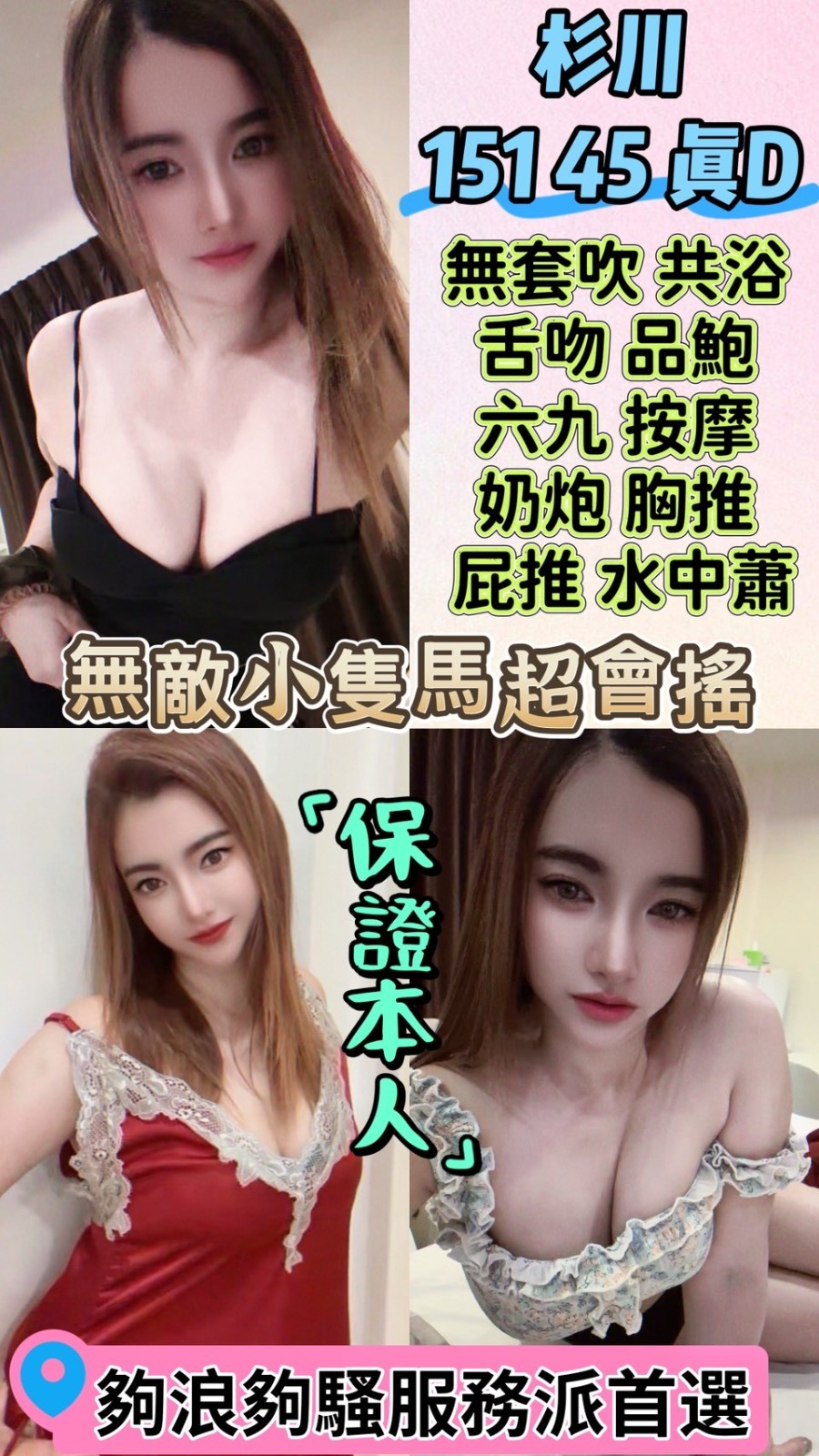 無套吹/共浴殘廢澡/親密KISS.舌吻(視個人衛生和妹妹現場感覺.自行開發)奶泡/按摩/舔蛋蛋/69品鮑/胸推/中文溝通