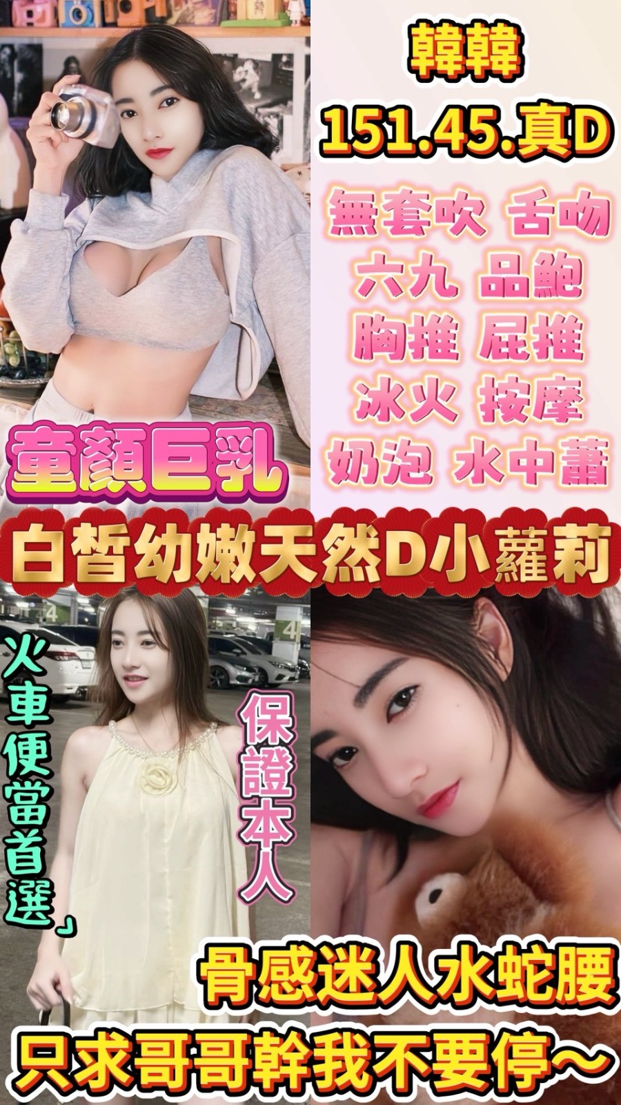 無套吹/共浴殘廢澡/親密KISS.激情舌吻(視個人衛生和妹妹現場感覺.自行開發)品鮑/六九/按摩/奶炮 胸推/屁推/冰火