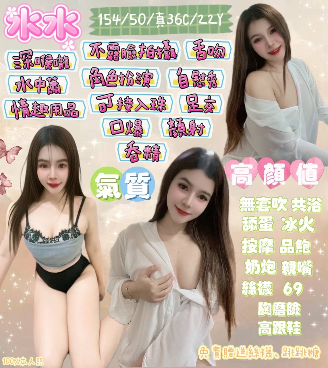 無套吹/奶泡/按摩/品鮑/69/親嘴/舔蛋/共浴/高跟鞋/胸膜臉/絲襪/🉑️水中蕭/🉑️深喉嚨/🉑️自慰秀/🉑️舌吻/🉑️角色扮演/🉑️足交/🉑️雙飛