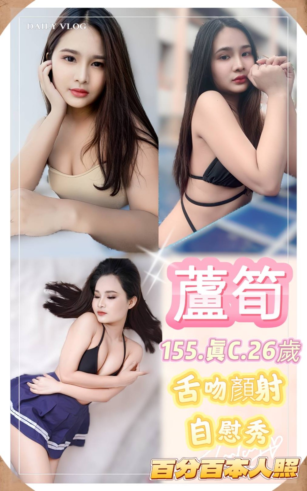 無套吹/戴套做/前後澡/舔蛋/奶炮/胸推/屁推/按摩/親嘴/舌吻(視現場感覺而定)
