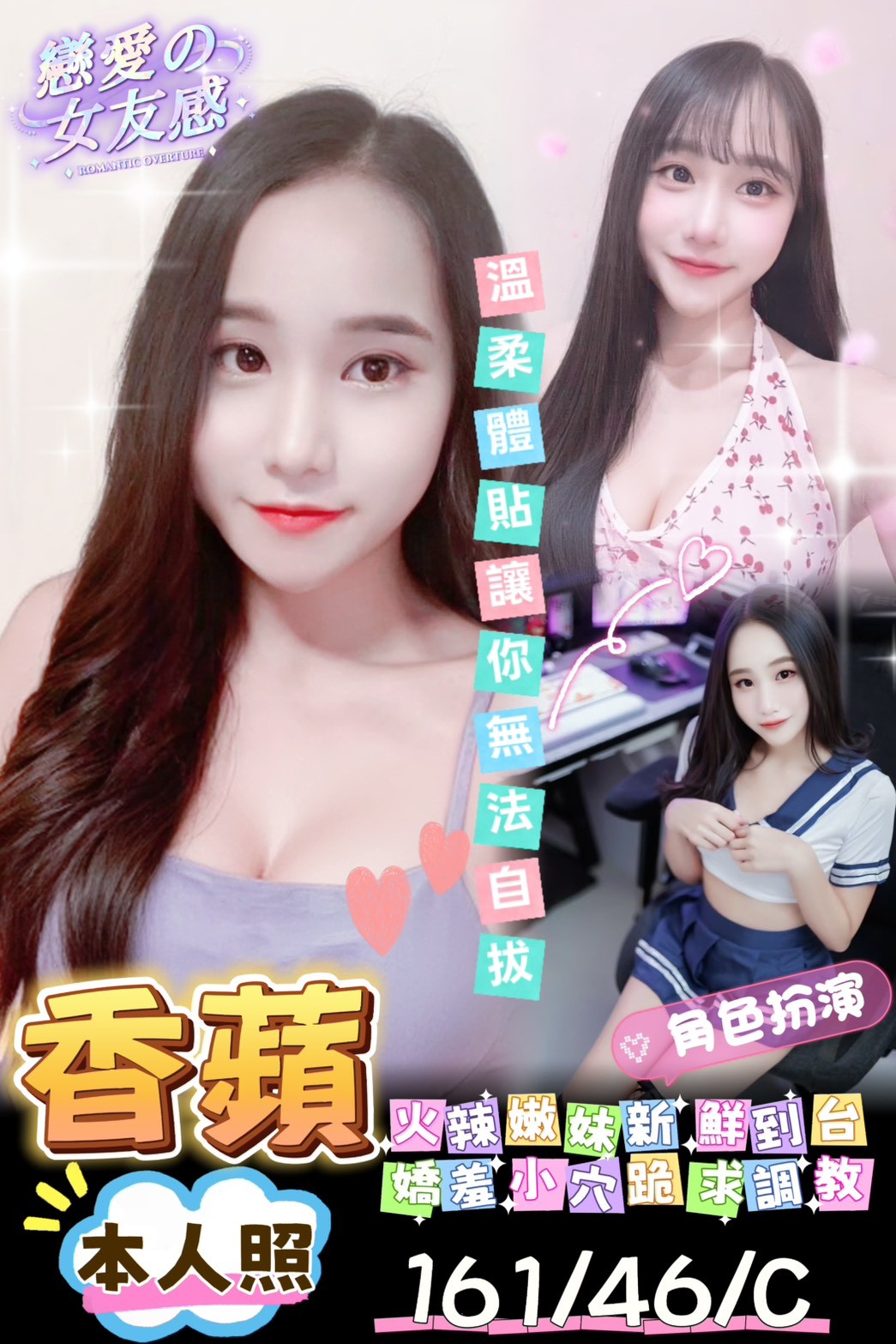 甜蜜共浴/無套吹/69/小親親/品鮑/舔蛋/奶炮/胸推/輕功/按摩/可配合絲襪or變裝(需自備)/可配合角色扮演(需自備)